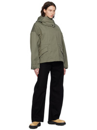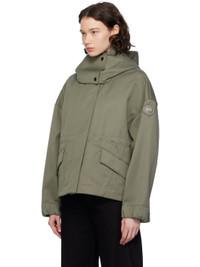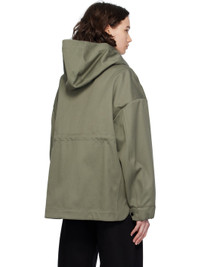Polyester- and cotton-blend twill jacket. · Detachable hood at stand collar · Two-way zip closure with press-stud placket · Flap pockets · Droptail hem · Metal eyelets at underarms · Embroidered logo patch at sleeve · Adjustable press-stud tab at elasticized cuffs · Taped seams at interior · Patch pockets at interior · Bungee-style drawstring at interior waist · Partial twill lining Supplier color: Smokey sage Body: 67% polyester, 33% cotton. Lining: 100% polyester. Made in Bulgaria 241014F063006