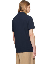 Cotton pique polo. · Rib-knit spread collar and cuffs · Three-button placket · Embroidered logo patch at chest · Tennis-tail hem Supplier color: Navy 100% cotton. Made in Portugal 251014M212004