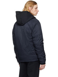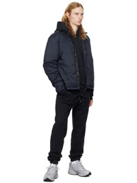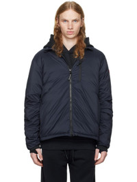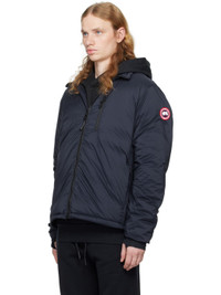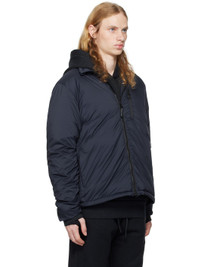 Packable down-filled nylon ripstop jacket. Lightweight, water-repellent, wind-resistant, and durable. · Bungee-style drawstring at stand collar · Two-way zip closure · Zip pockets · Concealed bungee-style drawstring at hem · Embroidered logo patch at sleeve · Power Stretch® jersey cuffs · Zip and patch pocket at interior · Nylon ripstop and quilted satin lining Supplier color: Atlantic navy Fill: 90% duck down, 10% duck feather.