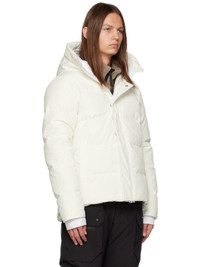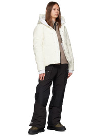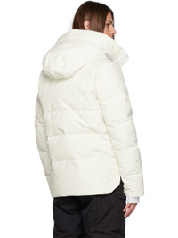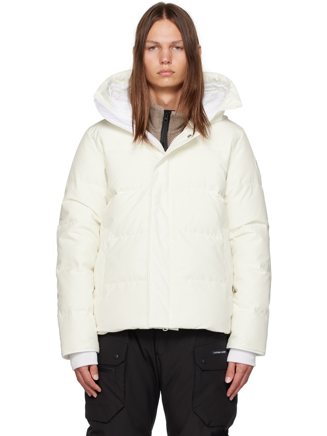 Down-filled quilted polyester-blend Arctic Tech® canvas jacket. Water-repellent. · Detachable trim at hood · Two-way zip closure with press-stud placket · Welt pockets · Vented side seams · Embroidered logo patch at sleeve · Inset rib knit cuffs · Patch pockets and zip pocket at interior · Shoulder straps at interior · Full nylon satin lining Part of the HUMANATURE capsule collection. Supplier color: Greige Fill: 80% duck down, 20% duck feathers. Body: 84% polyester, 16% cotton. Lining: 100% nylon. Made in Canada 232014M178046