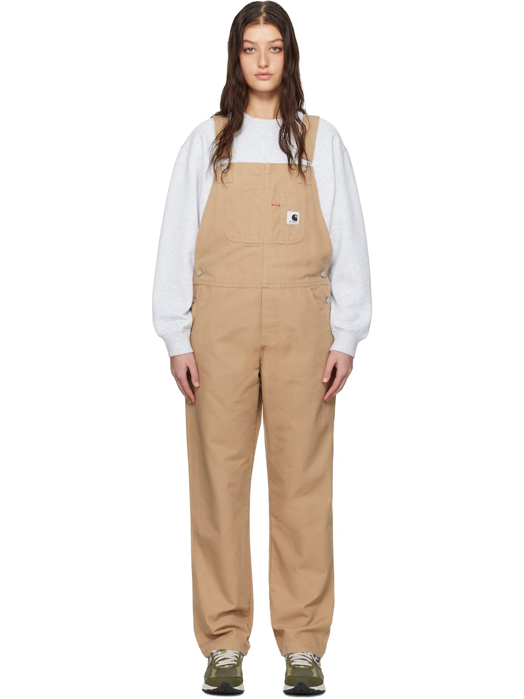 Heavyweight 12 oz organic cotton Dearborn canvas overalls. · Straight-leg · Square neck · Patch pockets at chest · Logo patch at chest and back pocket · Four-pocket styling · Mock fly · Button fastening at sides · Adjustable shoulder straps · Logo-engraved silver-tone hardware Supplier color: Dusty Hamilton brown Body: 100% organic cotton. Lining: 65% polyester, 35% cotton. Made in Tunisia 251111F070001