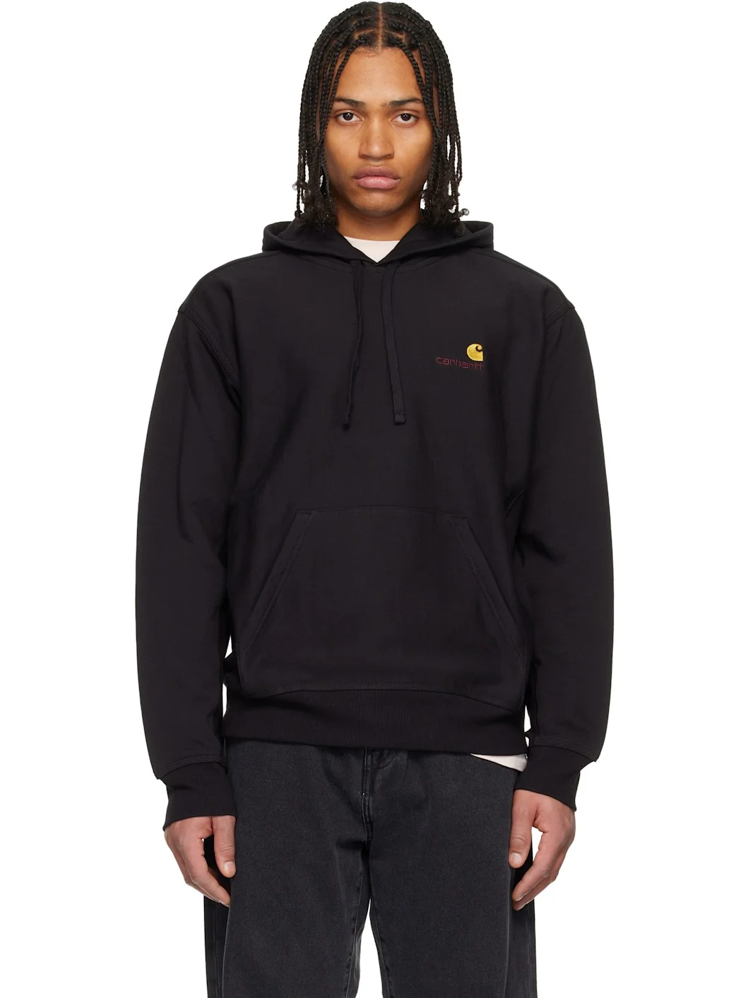 French terry hoodie. · Drawstring at hood · Logo embroidered at chest · Kangaroo pocket · Rib-knit hem and cuffs · Dropped shoulders · Rib-knit panel at sides Supplier color: Black Body: 80% cotton, 20% polyester. Trim: 97% cotton, 3% elastane. Made in Cambodia 261111M202002