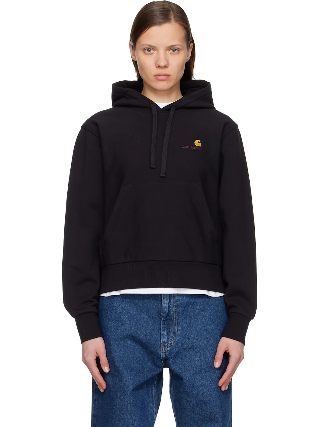 Cotton-blend fleece hoodie. · Drawstring at hood · Logo embroidered at chest · Kangaroo pocket · Rib-knit hem and cuffs · Dropped shoulders · Rib-knit panel at sides Supplier color: Black 50% polyester, 50% cotton. Made in Cambodia 261111F097004