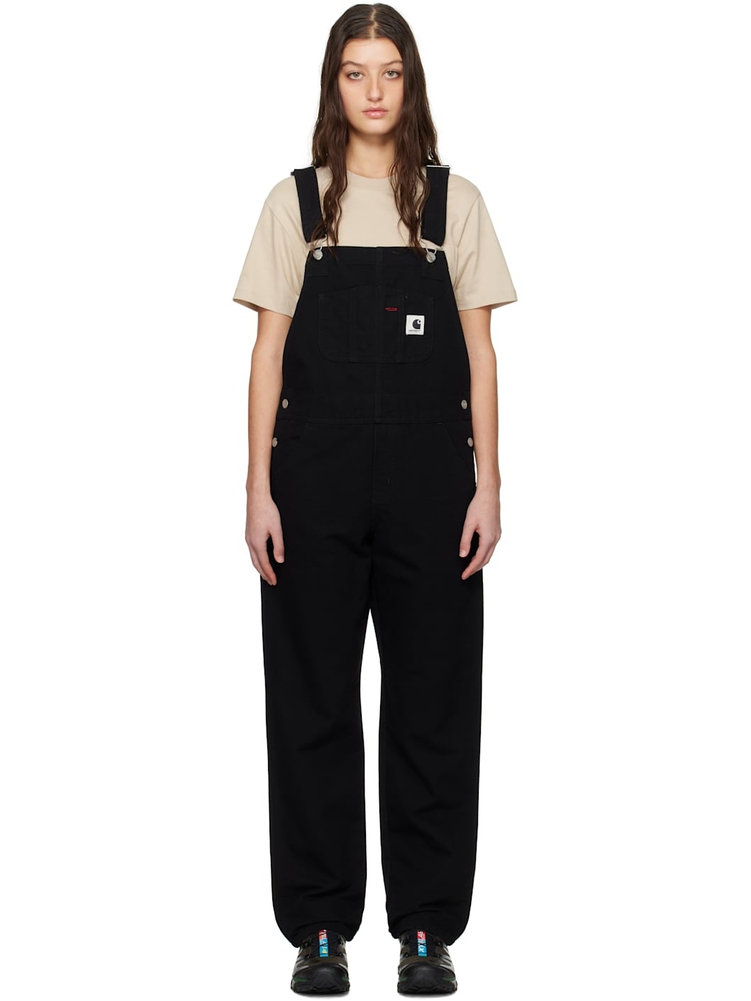 Heavyweight 12 oz organic cotton Dearborn canvas overalls. · Straight-leg · Square neck · Patch pockets at chest · Logo patch at chest and back pocket · Four-pocket styling · Mock fly · Button fastening at sides · Adjustable shoulder straps · Logo-engraved silver-tone hardware Supplier color: Black Body: 100% organic cotton. Lining: 65% polyester, 35% cotton. Made in Tunisia 251111F070000