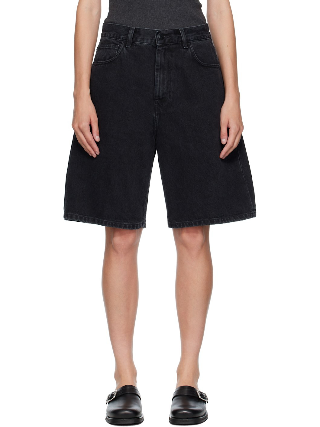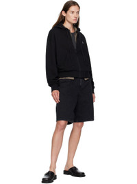 Stonewashed 13.5 oz non-stretch denim shorts. · Fading and subtle distressing throughout · Low-rise · Belt loops · Five-pocket styling · Zip fly · Logo patch at back pocket Supplier color: Black 100% cotton. Made in Tunisia 252111F088003