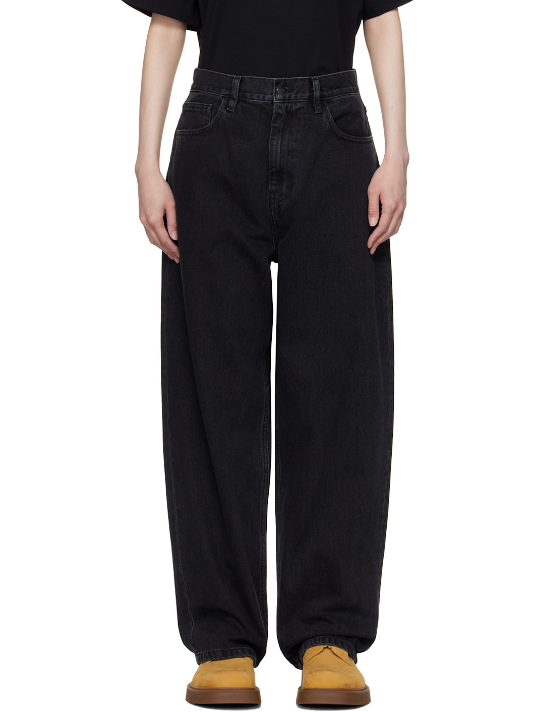 Loose-fit heavyweight non-stretch denim jeans. Fading throughout. · Stone-washed · Mid-rise · Belt loops · Five-pocket styling · Zip-fly · Logo patch at back pocket · Logo-engraved gunmetal-tone hardware Supplier color: Stone washed black Body: 100% cotton. Lining: 65% polyester, 35% cotton. Made in Tunisia 251111F069002