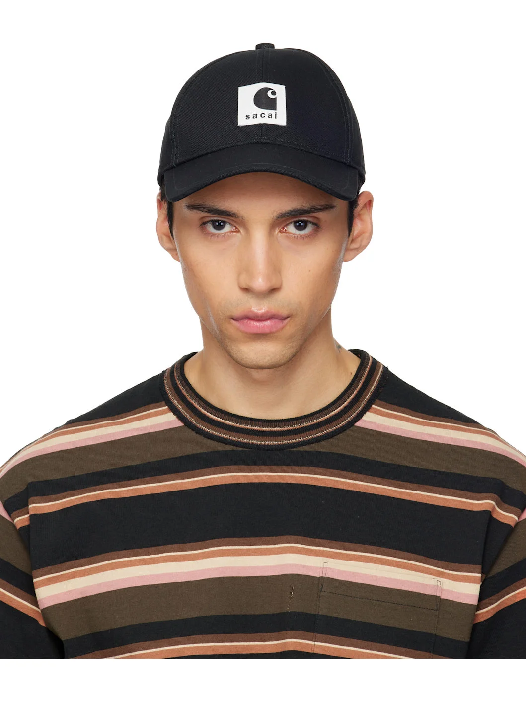 Cotton canvas cap. · Logo patch at face · Curved brim · Cinch fastening Part of the sacai x Carhartt Work In Progress collaboration. Supplier color: Black 100% cotton. Made in Japan 261445M139007