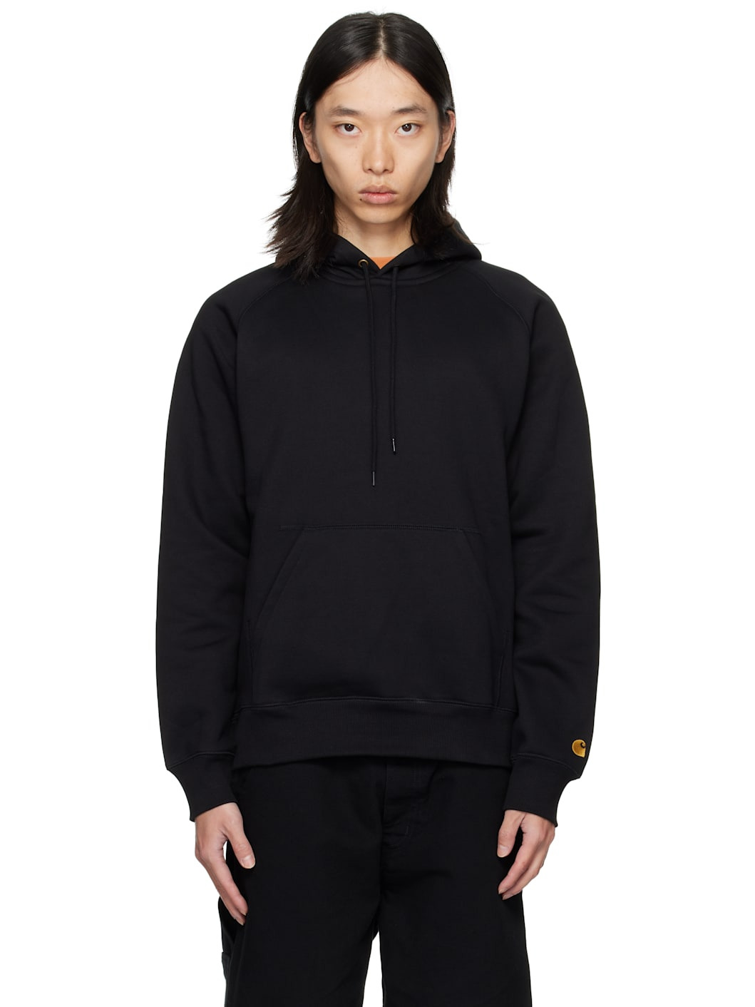 13 oz cotton-blend fleece hoodie. · Drawstring at hood · Zip closure · Patch pockets at front · Rib-knit hem and cuffs · Raglan sleeves · Logo embroidered at cuff Supplier color: Black Body: 58% cotton, 42% polyester. Trim: 96% cotton, 4% elastane. Made in Pakistan 252111M202001