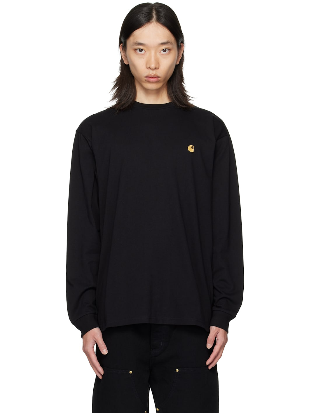 235 g/sqm cotton jersey T-shirt. · Rib-knit crewneck and cuffs · Logo embroidered at chest · Dropped shoulders Supplier color: Black/Gold 100% cotton. Made in Bangladesh 252111M213004