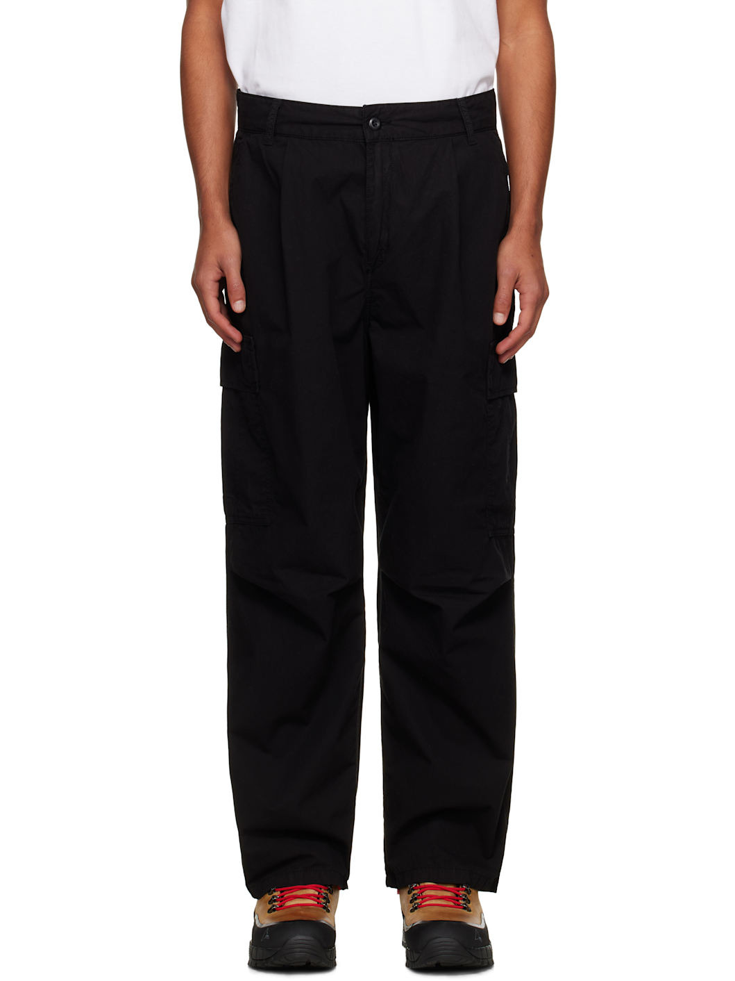 Garment-dyed cotton twill cargo pants. · Loose-fit · Belt loops · Four-pocket styling · Zip fly · Pleats at knees · Dropped inseam · Cargo pocket at outseams · Logo patch at back pocket Supplier color: Black 100% cotton. Made in Tunisia 252111M188006