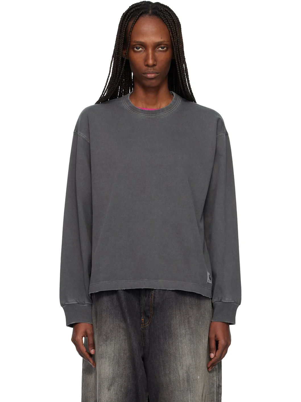 250 gsm organic cotton jersey T-shirt. · Fading and subtle distressing throughout · Rib-knit crewneck and cuffs · Embroidered logo patch at front · Dropped shoulders Supplier color: Black 100% organic cotton. Made in Bangladesh 261111F110005