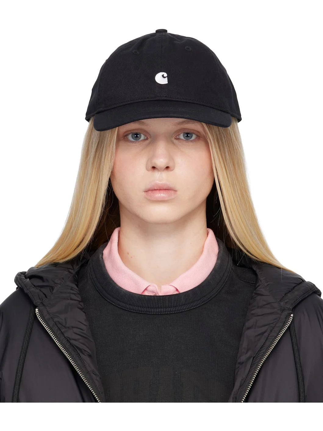 Garment-washed 296 gsm cotton twill cap. · Embroidered eyelets at crown · Logo embroidered at face · Curved brim · Cinch fastening Supplier color: Black/White 100% cotton. Made in Bangladesh 261111F016000