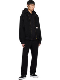 Washed non-stretch 13.5 oz organic cotton denim jeans. · Loose-fit and tapered · Mid-rise · Belt loops · Five-pocket styling · Zip fly · Logo patch at back pocket · Logo-engraved gunmetal-tone hardware Supplier color: Black (one wash) Body: 100% organic cotton. Lining: 65% polyester, 35% cotton. Made in Tunisia 251111M186000