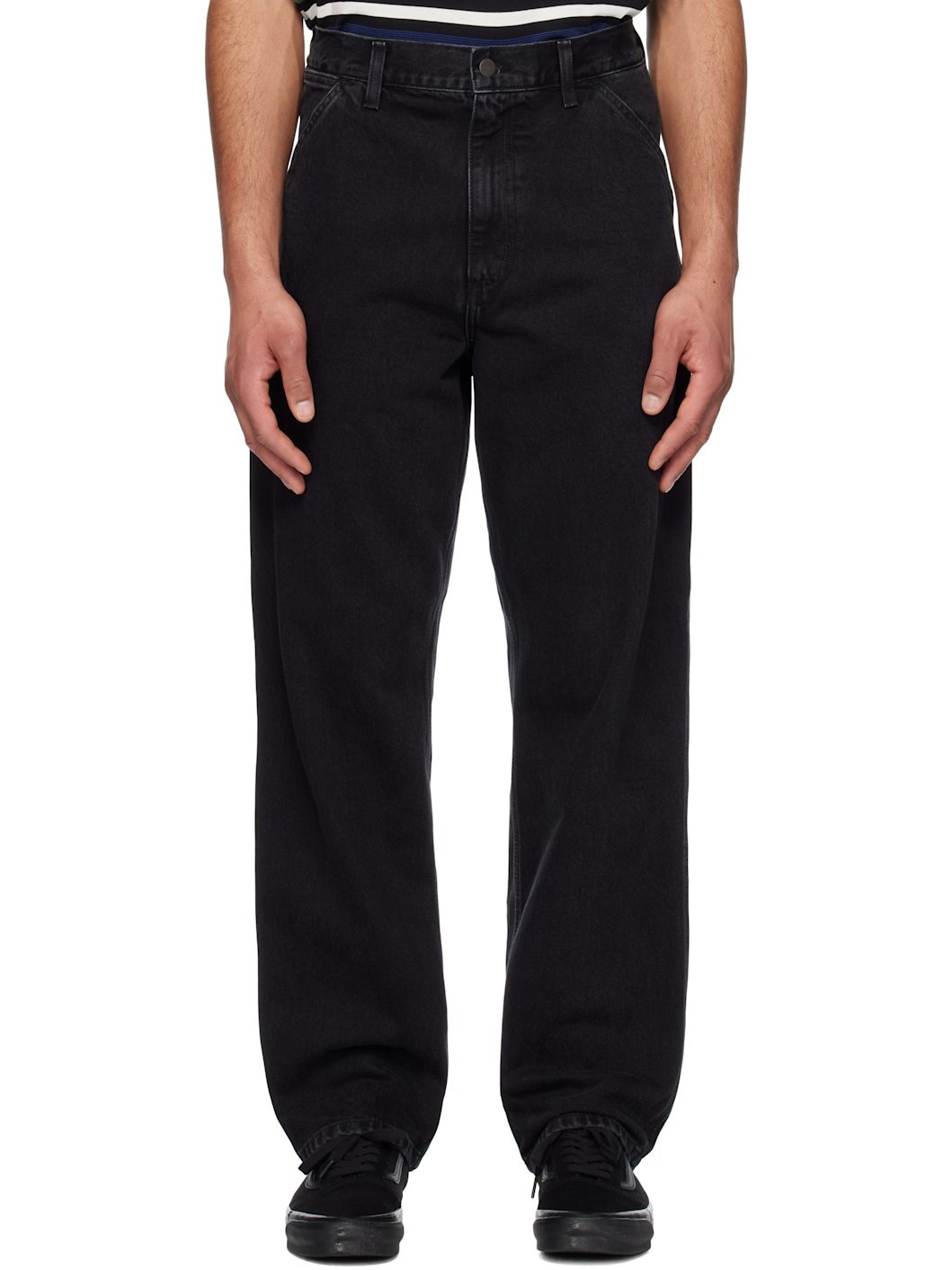 Stonewashed 13.5 oz non-stretch denim jeans. Fading throughout. · Straight-leg and loose-fit · Mid-rise · Belt loops · Five-pocket styling · Zip fly · Hammer loop and patch pocket at outseam · Patch pockets at outseam · Logo patch at back pocket · Logo-engraved bronze-tone hardware Supplier color: Black (stone washed) 100% cotton. Made in Tunisia 251111M186028
