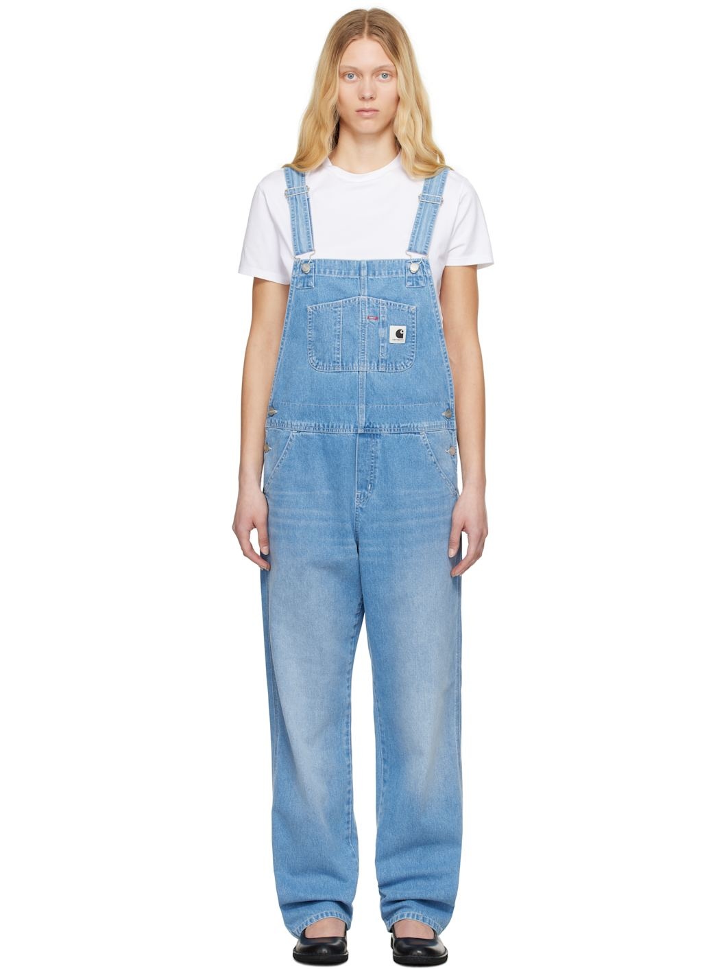 Straight-leg 11.25 oz non-stretch denim overalls. Fading and whiskering throughout. · Square neck · Patch pockets at chest · Logo patch at chest and back pocket · Four-pocket styling · Mock fly · Button fastening at sides · Adjustable shoulder straps · Logo-engraved silver-tone hardware · Contrast stitching in white Supplier color: Blue (light true washed) 100% cotton. Made in Tunisia 251111F070006
