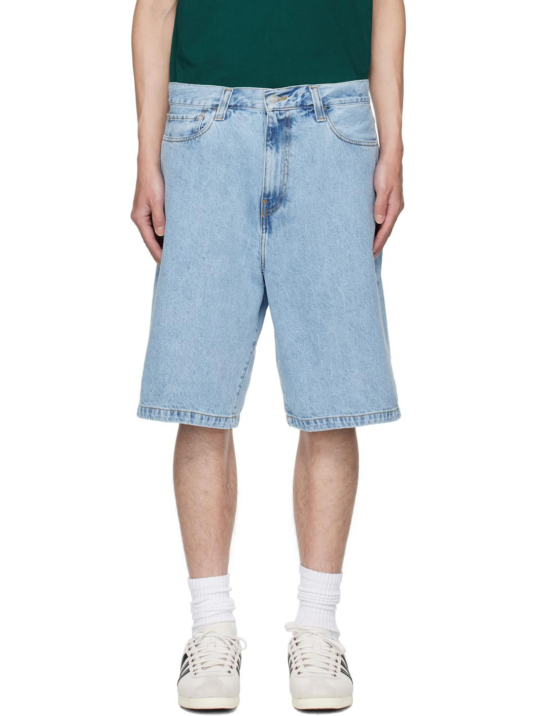12 oz non-stretch Robertson denim shorts. · Fading and bartacks throughout · Belt loops · Five-pocket styling · Zip fly · Logo patch at back pocket · Contrast stitching in tan Supplier color: Blue bleached Body: 100% organic cotton. Pocket lining: 65% polyester, 35% cotton. Made in Tunisia 252111M193019