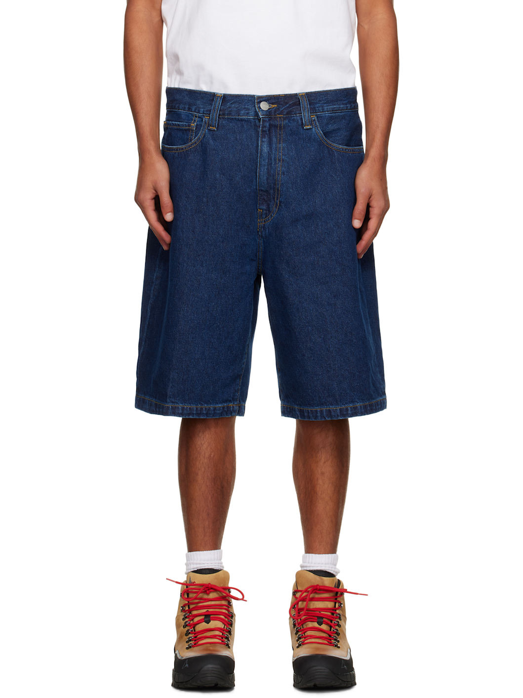 Stonewashed heavyweight 12 oz non-stretch denim shorts. · Fading throughout · Loose-fit · Mid-rise · Belt loops · Five-pocket styling · Zip fly · Logo patch at back pocket · Contrast stitching in tan Supplier color: Blue (Stone Washed) Body: 100% cotton. Pocket lining: 65% polyester, 35% cotton. Made in Tunisia 252111M193020