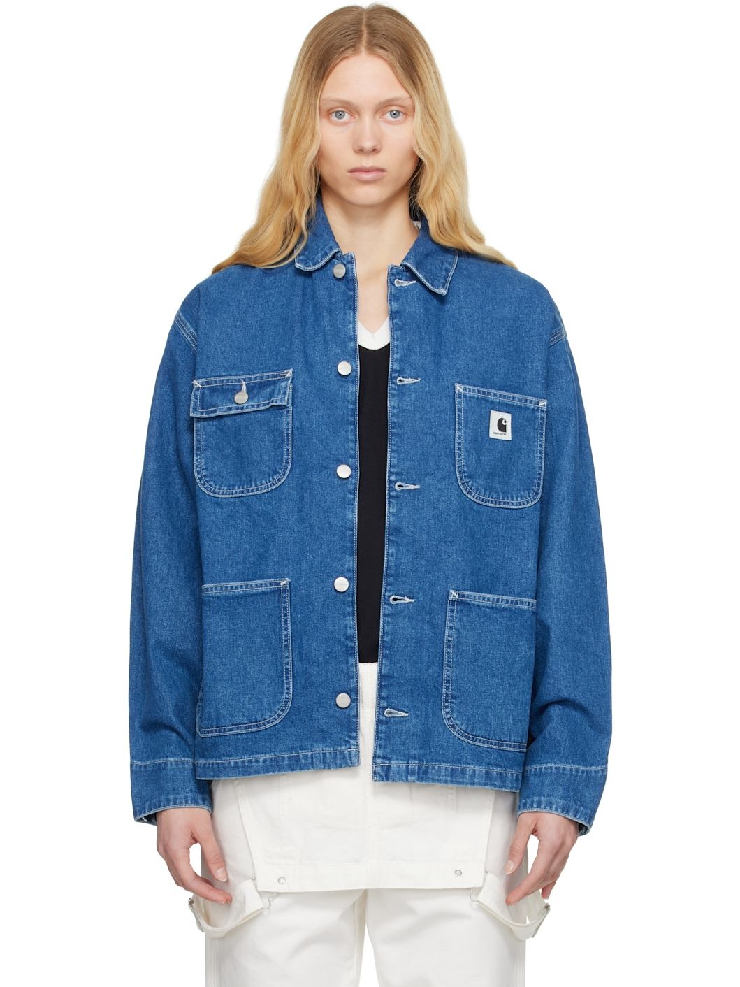 Stonewashed 11.25 oz non-stretch denim jacket. Fading throughout. · Loose-fit · Button closure · Logo patch at chest · Flap pocket and patch pockets · Adjustable button fastening at cuffs · Unlined · Logo-engraved silver-tone hardware · Contrast stitching in white Supplier color: Blue (stone washed) 100% cotton. Made in Tunisia 251111F060003