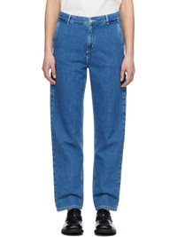 Stonewashed 10.5 oz non-stretch denim jeans. Fading throughout. · Loose-fit and straight-leg · Mid-rise · Belt loops · Four-pocket styling · Zip fly · Patch pockets at outseam · Hammer loop and patch pocket at outseam · Logo patch at back pocket · Logo-engraved silver-tone hardware · Contrast stitching in white Supplier color: Blue (stone washed) 100% cotton. Made in Tunisia 251111F069019