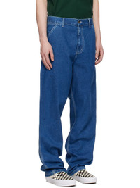 11.25 oz heavyweight non-stretch denim jeans. Fading and reinforced stitching throughout. · Straight-leg · Belt loops · Five-pocket styling · Zip-fly · Hammer loop at outseam · Patch pockets at outseams · Topstitching at back pockets · Logo patch at back pocket · Logo-engraved antiqued gold-tone hardware · Contrast stitching in white Supplier color: Blue Body: 100% cotton. Lining: 65% polyester, 35% cotton. Made in Tunisia 251111M186040