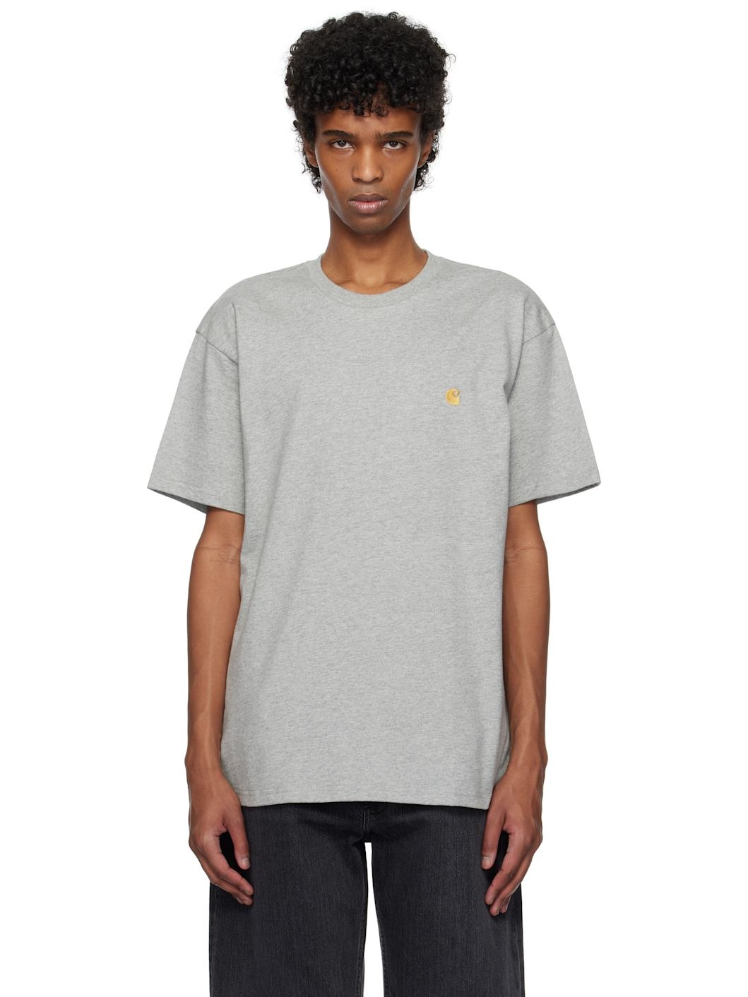 235 gsm combed cotton jersey T-shirt. · Rib-knit crewneck · Logo embroidered at chest Supplier color: Grey heather/Gold 100% cotton. Made in Bangladesh 251111M213050