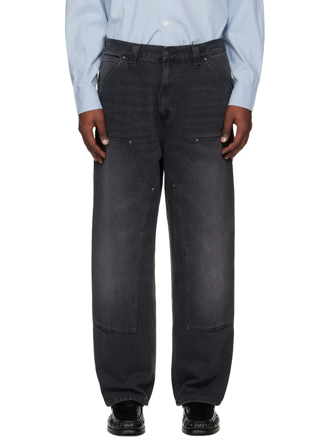 Non-stretch denim jeans. · Fading and distressing throughout · Belt loops · Five-pocket styling · Zip fly · Panel at legs · Patch pockets at outseam · Hammer loop and patch pocket at outseam · Logo patch at back pocket Supplier color: Black 100% cotton. Made in Tunisia 261111M186015