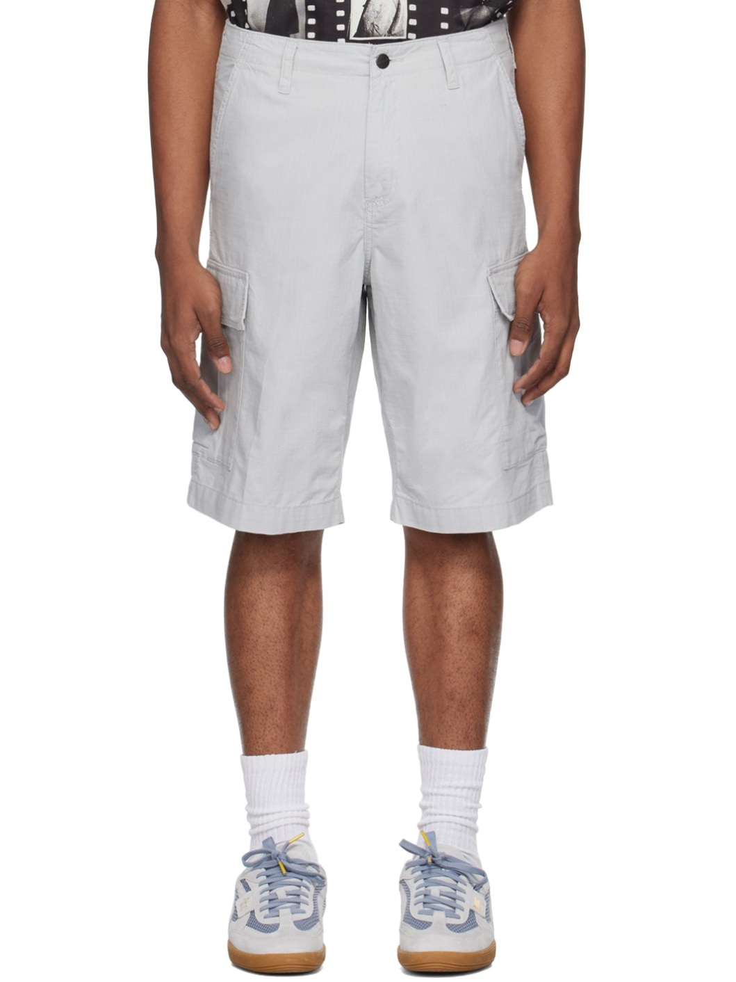 Lightweight 6.5 oz cotton ripstop shorts. · Low-rise · Belt loops · Four-pocket styling · Zip-fly · Logo patch at outseam · Cargo pocket at outseams Supplier color: Sonic silver Body: 100% cotton. Lining: 50% polyester, 50% cotton. Made in Pakistan 241111M193025