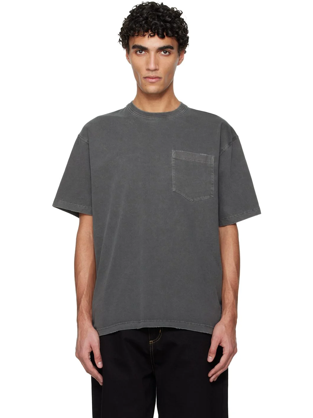 Organic cotton jersey T-shirt. · 250 g/sqm jersey · Fading and subtle distressing throughout · Rib-knit crewneck · Patch pocket at chest · Logo patch at front hem Supplier color: Black (Grind Wash) 100% organic cotton. Made in Bangladesh 261111M213018