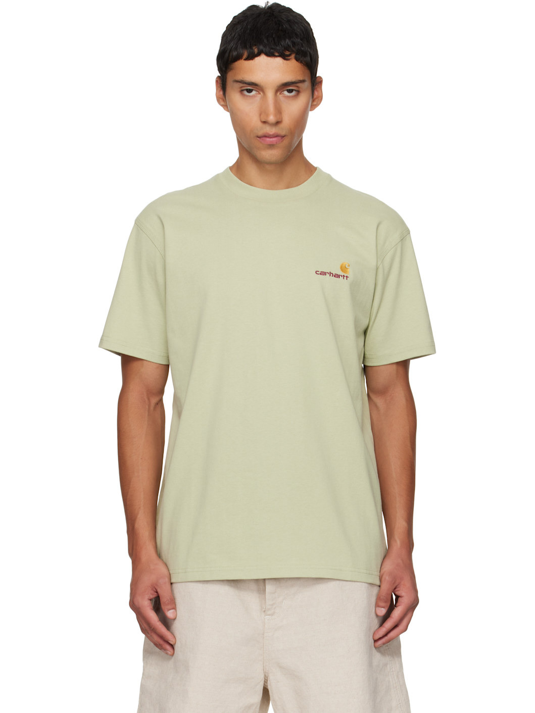240 g/sqm organic cotton jersey T-shirt. · Rib-knit crewneck · Logo embroidered at chest · Dropped shoulders Supplier color: Pale olive 100% organic cotton. Made in Bangladesh 252111M213038