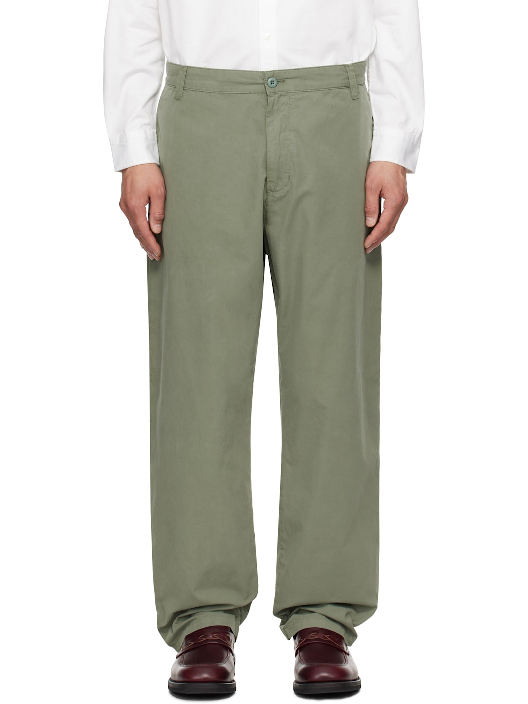 Loose-fit and tapered 6 oz cotton poplin trousers. · Garment-dyed · Belt loops · Four-pocket styling · Zip fly · Logo patch at back Supplier color: Park (garment dyed) 100% cotton. Made in Tunisia 251111M191038