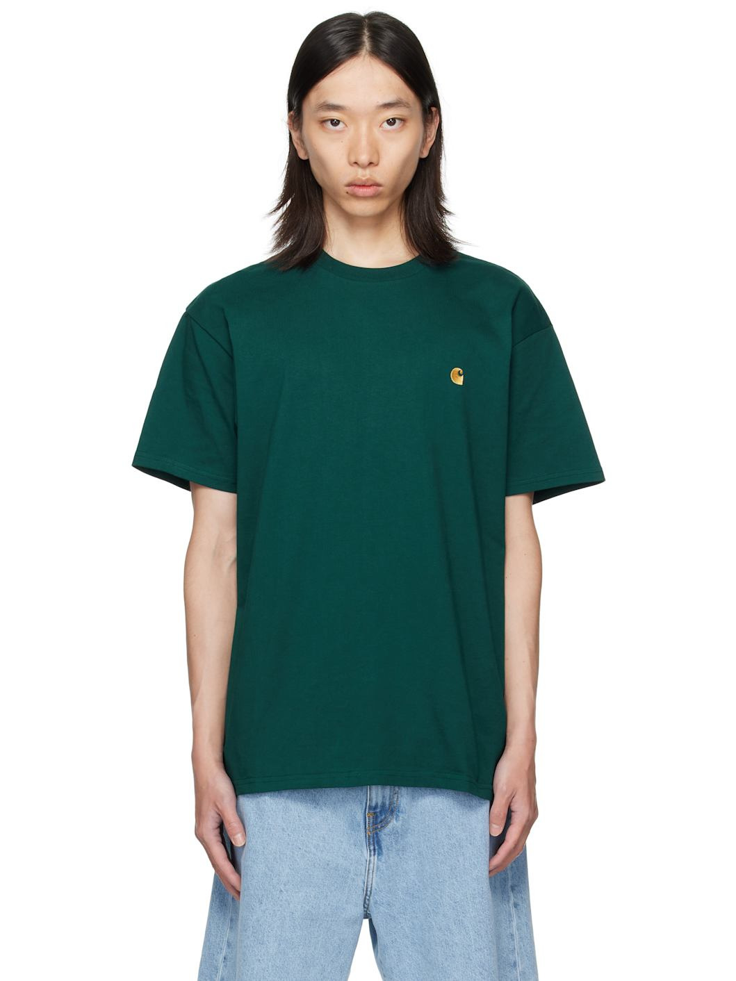 235 gsm cotton jersey T-shirt. · Rib-knit crewneck · Logo embroidered at chest Supplier color: Dark fir/Gold 100% cotton. Made in Bangladesh 252111M213045