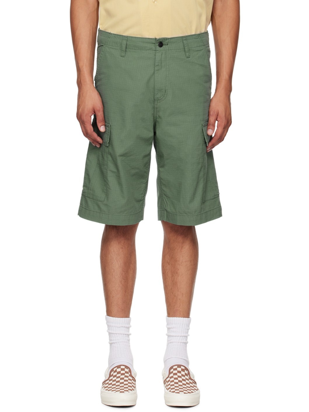 Lightweight 6.5 oz cotton ripstop cargo shorts. · Low-rise · Belt loops · Four-pocket styling · Zip-fly · Cargo pocket at outseams · Logo patch at back Supplier color: Duck green Body: 100% cotton. Lining: 50% polyester, 50% cotton. Made in Pakistan 242111M193005