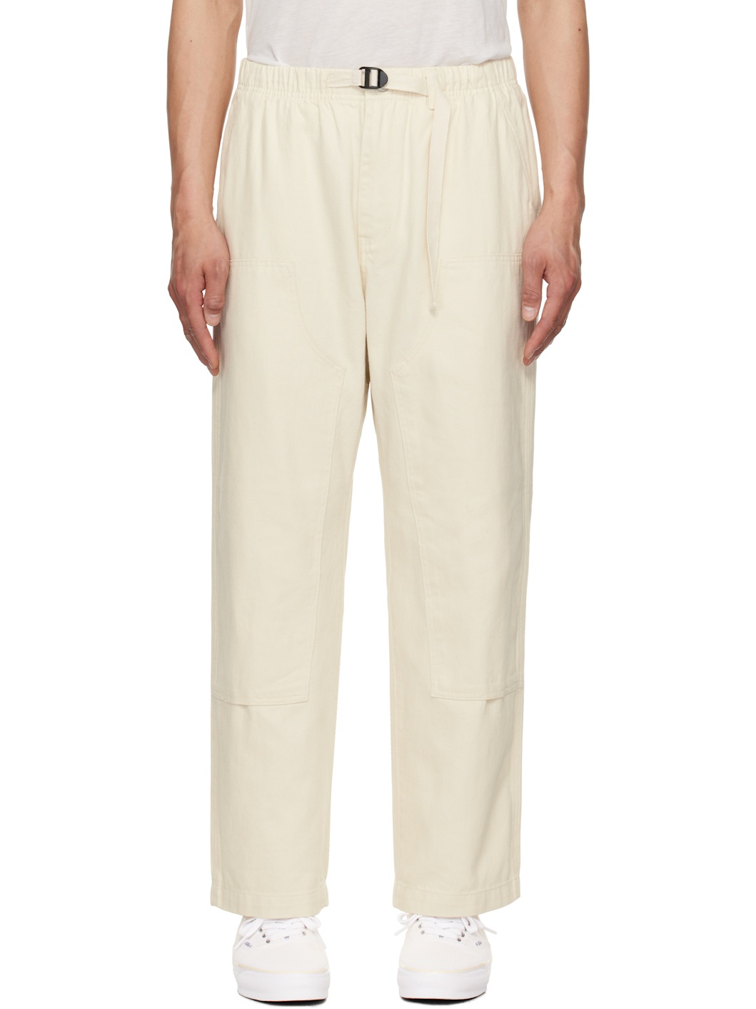 Heavyweight 10.2 oz hemp- and cotton-twill trousers. · Mid-rise · Integrated cinch belt and belt loops at elasticized waistband · Four-pocket styling · Zip fly · Reinforced panel at legs · Textile logo patch at back pocket Supplier color: Natural Body: 55% hemp, 45% cotton. Lining: 100% cotton. Made in Cambodia 251111M191027