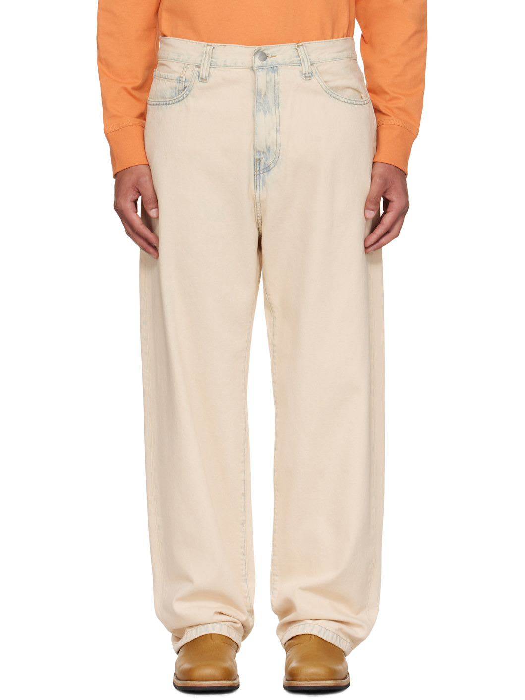 Stonewashed 12 oz non-stretch Robertson denim jeans. · Fading throughout · Loose-fit, tapered · Belt loops · Five-pocket styling · Zip fly · Logo patch at back pocket · Logo-engraved antiqued silver-tone hardware Supplier color: Sand bleached Body: 100% cotton. Pocket lining: 65% polyester, 35% cotton. Made in Tunisia 252111M191025