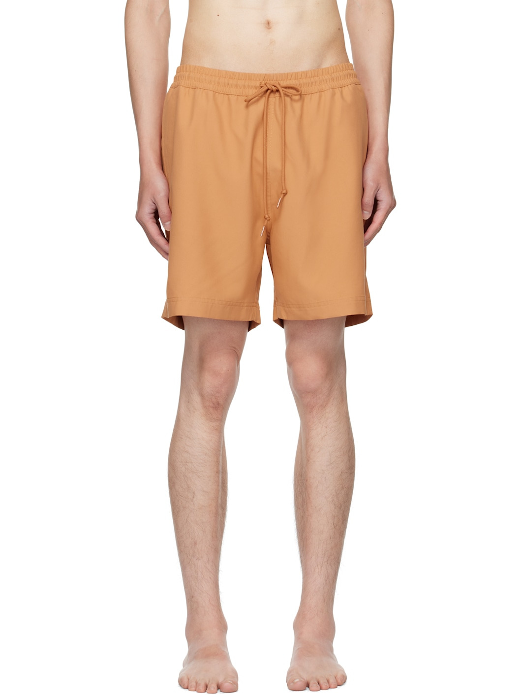 Satin swim shorts. · Drawstring at elasticized waistband · Three-pocket styling · Logo embroidered at front cuff · Mesh briefs-style lining Supplier color: Redhaven Body: 100% polyester. Lining: 100% polyester. Made in Bangladesh 252111M208002