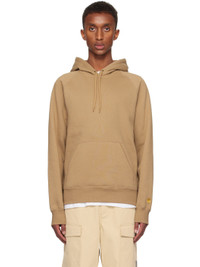 440 gsm cotton-blend fleece hoodie. · Drawstring at hood · Kangaroo pocket · Rib-knit hem and cuffs · Raglan sleeves · Logo graphic embroidered at cuff Supplier color: Peanut/Gold