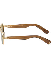 Square metal-frame sunglasses. · Green lenses · 100% UVA/UVB protection, category 3 · Logo etched at lens · Adjustable rubber nose pads · Transparent acetate arms · Core wires at temples · Inset logo at temple tips · Includes case · Gold-tone hardware · Size: 53.17 145 Supplier color: Gold/Brown/Green Acetate, metal. Made in France 261346M134002