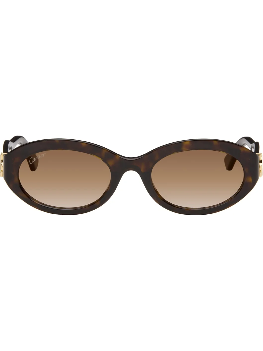 Oval semi-transparent tortoiseshell acetate-frame sunglasses. · Brown lenses · Logo etched at lens · Adjustable rubber nose pads · Logo hardware at temples · Inset logo hardware at temple tips · Includes case · Size: 53.21 140 Supplier color: Havana Acetate. Made in Italy 261346F005003