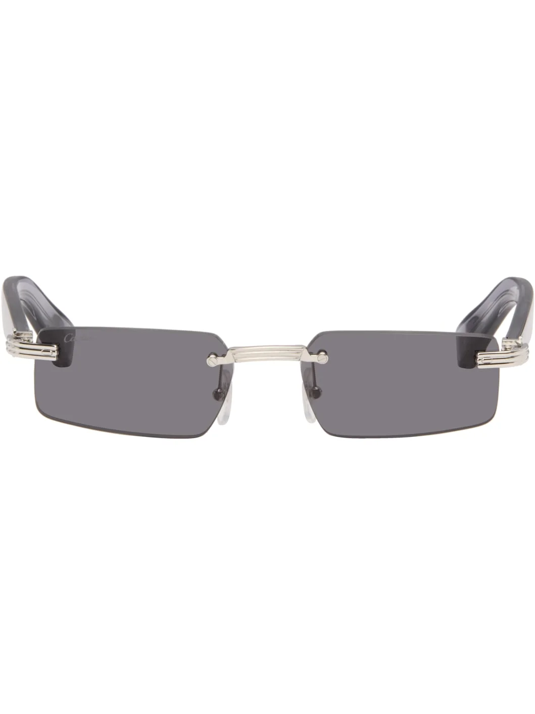Rectangular rimless metal- and transparent acetate-frame sunglasses. · Gray lenses · Logo etched lens · Adjustable rubber nose pads · Logo hardware at temples · Inset logo hardware at temple tips · Includes case · Size: 55.18 145 Supplier color: Silver/Blue/Grey Metal, acetate. Made in France 261346M134027