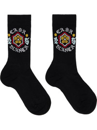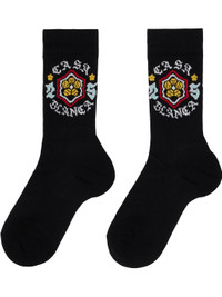 Pair of calf-high knit stretch cotton-blend socks. Jacquard logo graphic at rib-knit cuffs. Supplier color: Black 80% cotton, 17% polyamide, 3% spandex. Made in Italy 252195M220006