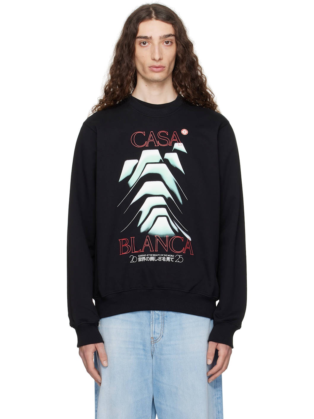 Organic cotton French terry sweatshirt. · Rib-knit crewneck, hem, and cuffs · Logo, graphic, and text printed at front · Dropped shoulders Supplier color: Black loopback Body: 100% organic cotton. Trim: 95% cotton, 5% elastane. Made in Portugal 252195M204003