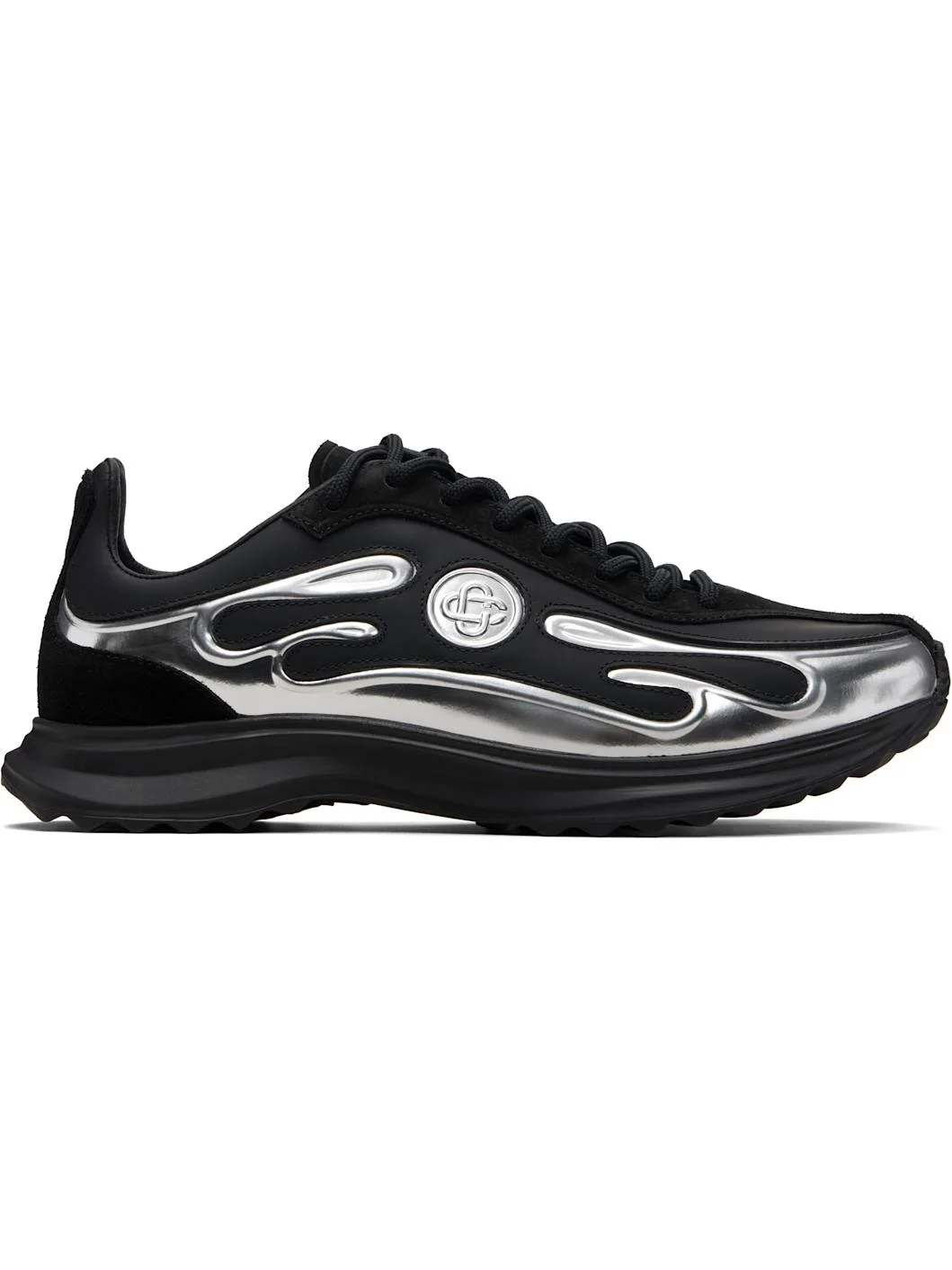 Low-top buffed faux-leather and faux-suede sneakers. · Lace-up closure · Padded collar · Logo applique at outer side · Foam rubber midsole · Treaded rubber sole Supplier color: Black/Silver Upper: synthetic. Sole: rubber. Made in Portugal 252195M237011
