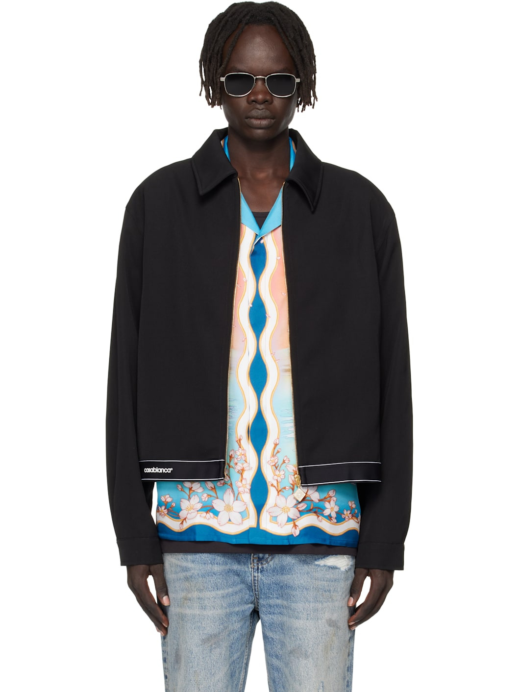 Wool twill jacket. · Spread collar · Zip closure · Seam pockets · Logo bonded at front hem · Elasticized hem · Press-stud barrel cuffs · Welt pocket at interior · Full satin lining Supplier color: Black Body: 100% wool. Lining: 100% viscose. Made in Portugal 252195M180000