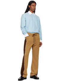 Cotton-blend oxford cloth shirt. Jacquard logo pattern and stripes throughout. · Cotton poplin spread collar · Button closure · Patch pocket · Shirttail hem · Buttoned barrel cuffs · Box pleat at back yoke · Logo-engraved corozo hardware Supplier color: Blue Body: 97% cotton, 3% viscose. Trim: 100% cotton. Made in Italy 251195M192041