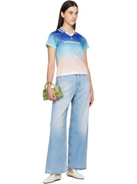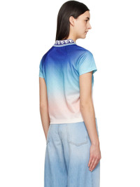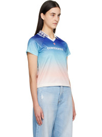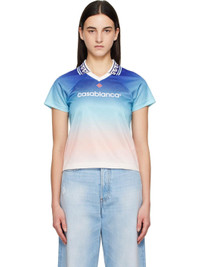 Polyester jersey T-shirt. Gradient and jacquard logo pattern throughout. · Graphic pattern at rib-knit open spread collar · Embroidered logo patch at chest · Logo printed at chest · Cropped hem · Raglan sleeves Supplier color: Blue gradient Body: 100% polyester. Trim: 95% polyester, 5% elastane. Made in Portugal 251195F108002