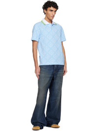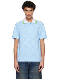 Cotton-blend jersey polo. · Jacquard logo pattern throughout · Stripes at rib-knit spread collar · Three-button placket · Vented side seams · Logo-engraved hardware Supplier color: Pale blue/White Body: 58% cotton, 40% polyester, 2% nylon. Trim: 90% polyester, 10% elastane. Made in Portugal 261195M212009