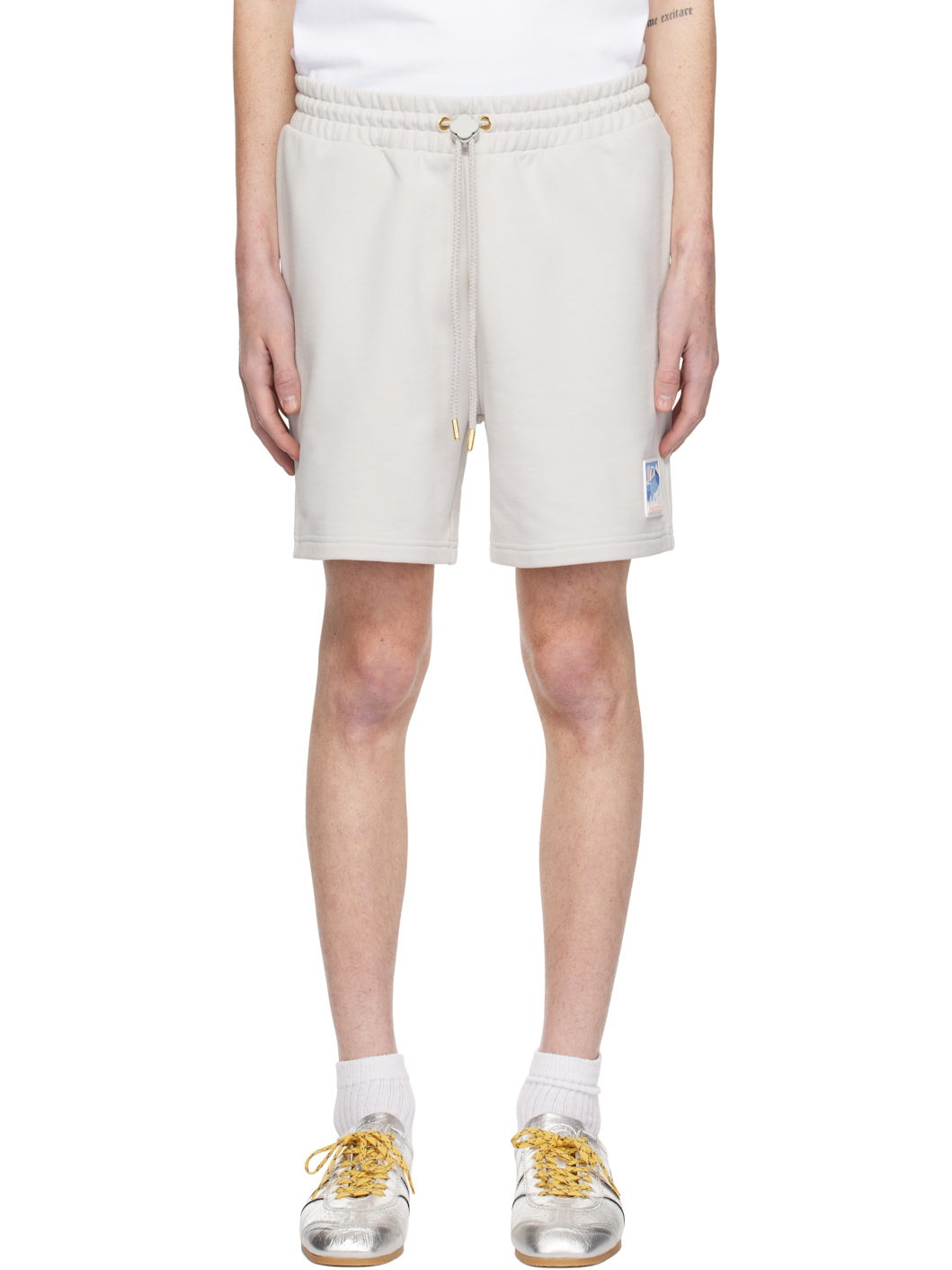 Organic cotton French terry shorts. · Cord-lock drawstring at elasticized waistband · Three-pocket styling · Rubberized logo graphic patch at leg Supplier color: Grey 100% organic cotton. Made in Portugal 251195M193013