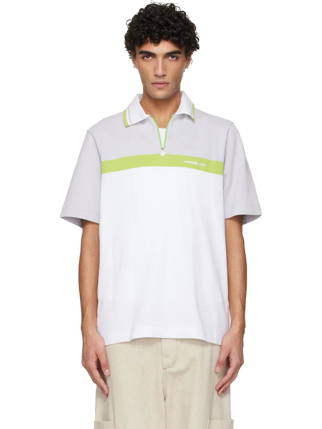 Organic cotton pique polo. · Striped rib-knit spread collar · Half-zip closure · Stripe and embroidered logo at chest · Tennis-tail hem Supplier color: Grey 100% organic cotton. Made in Portugal 261195M212014