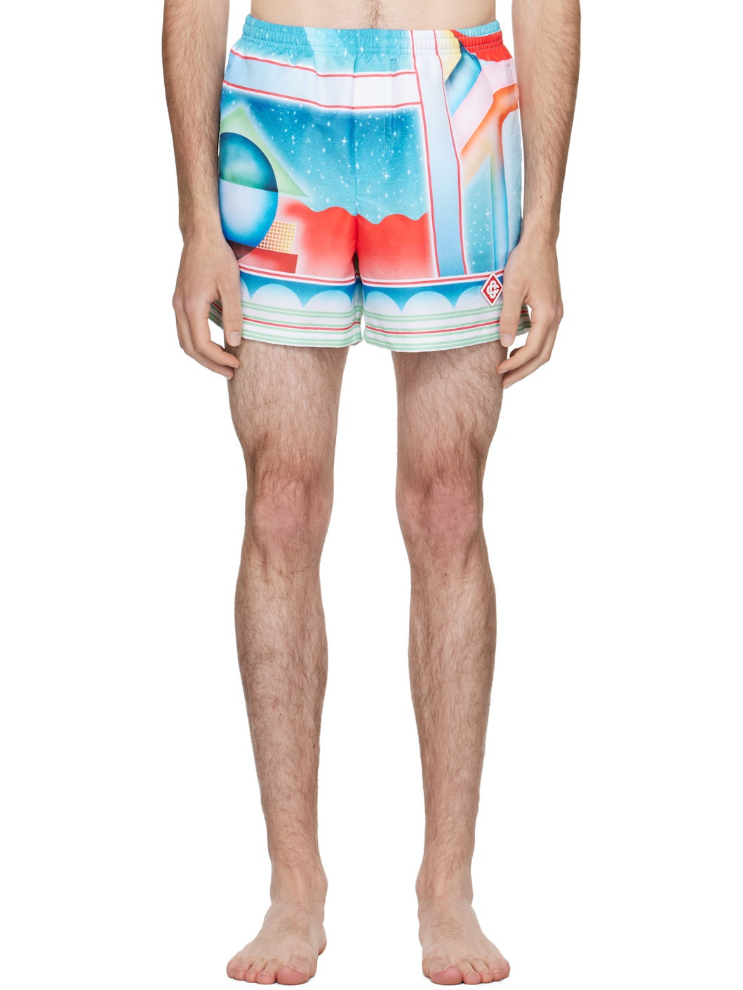Polyester taffeta swim shorts. · Graphic printed throughout · Concealed drawstring at elasticized waistband · Two-pocket styling · Mock fly · Rubberized logo patch at front · Brief-style stretch mesh lining Supplier color: Multicolour Body: 100% polyester. Lining: 80% polyester, 20% elastane. Made in Portugal 252195M193002
