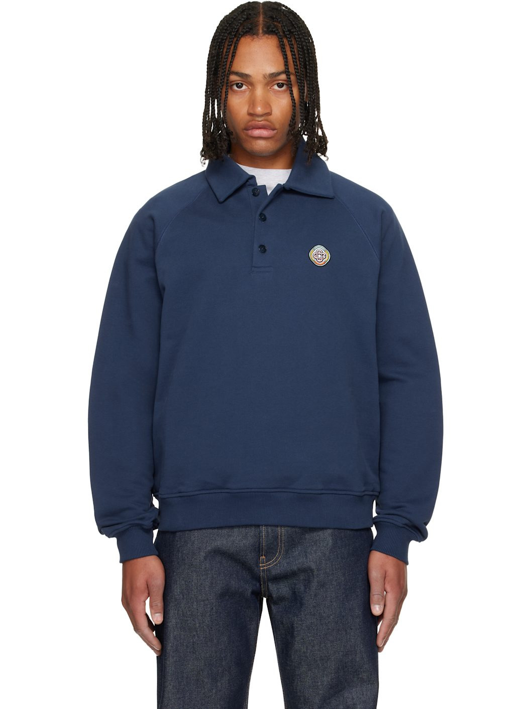 Organic cotton French terry polo. · Spread collar · Three-button placket · Embroidered logo patch at chest · Rib-knit hem and cuffs · Dropped shoulders Supplier color: Navy Body: 100% organic cotton. Trim: 95% cotton, 5% elastane. Made in Portugal 252195M212010